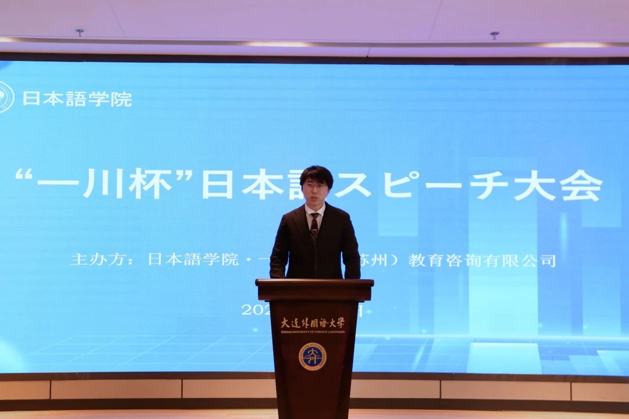 随后,李泽楠校友代表一川文研(苏州)教育咨询有限公司发表致辞。他回顾了自己在日本语学院学习期间参加日语演讲训练的经历,并表示通过高水平的训练,在各级各类赛事中取得了优异成绩,收获了宝贵的知识与经验,极大地提升了个人综合素质和能力水平。李泽楠校友希望以此次比赛为契机,为后辈们提供一个提升日语演讲能力、展现自身风采的平台,也为冲击更高层次的竞赛荣誉、培养更多优秀日语人才提供助力。
