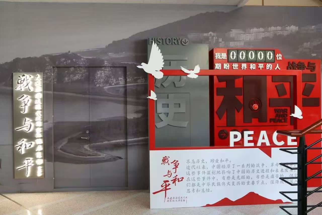 大连旅顺,素有“半部中国近代史”之称。在这里发生的两次近代战争,给这片土地带来了深重的灾难,近现代大连和旅顺的悲惨遭遇和历史变迁给中华民族留下深刻记忆。不忘历史,珍爱和平。位于大外的《战争与和平--大连旅顺近现代史国家记忆展览馆》以图文方式重现近现代旅大地区发生的战争与新中国成立以来旅大地区的发展,以辽东半岛风雨紧、漫漫长夜星火明、发展生产为前线和奋楫争先谱新篇四部分呈现了近代以来,大连、旅顺发生的一系列重大历史事件,记录了近现代旅大地区的历史变迁,以国家记忆的宏大视野,讲述在这片土地上曾经发生的战争,讲述大连人民在中国共产党领导下实现和平、保卫和平,讲述新中国 75 年来大连人民创造的辉煌业绩,以期参观者从时间和空间、大连和中国、中国和世界多维度、多侧面思考中华民族的伟大复兴和人类的和平发展,思考对国家、世界和未来的责任与担当。